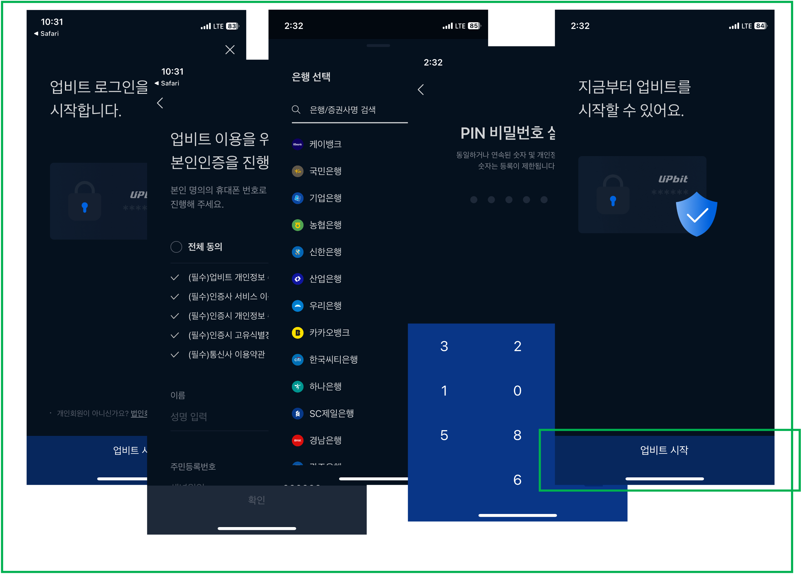 - '업비트 시작' 버튼 활성화 시 회원가입 완료