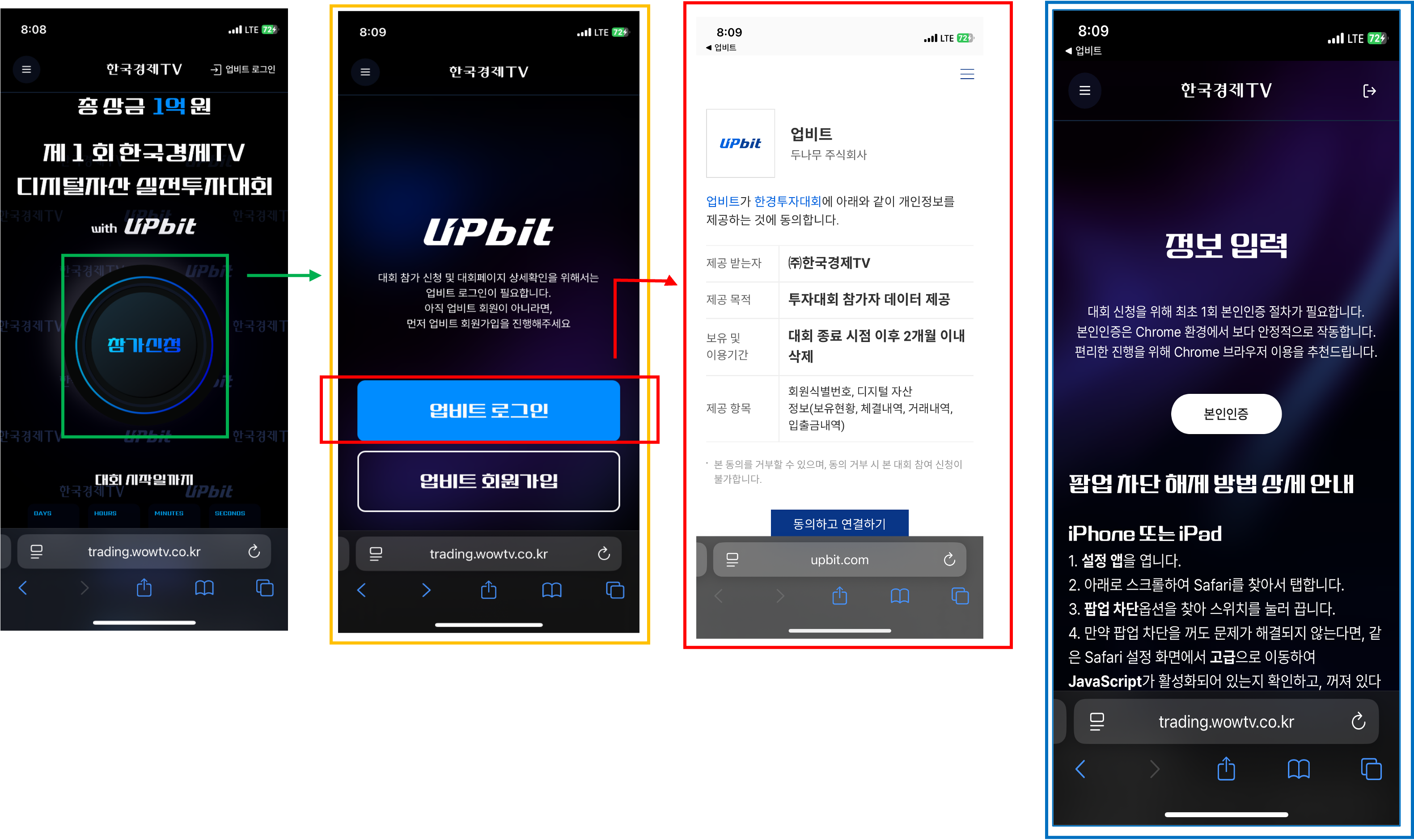 - 업비트 로그인 완료 후 대회 본인인증 페이지로 이동