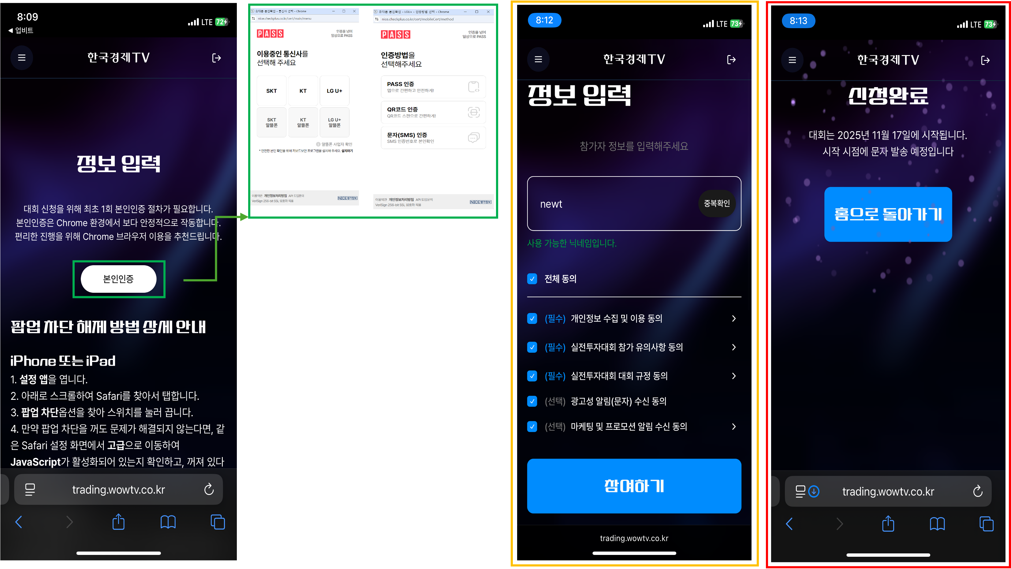 - 한국경제TV에 대회 운영을 위한 고객정보 제공(제공 항목) 동의 절차를 진행