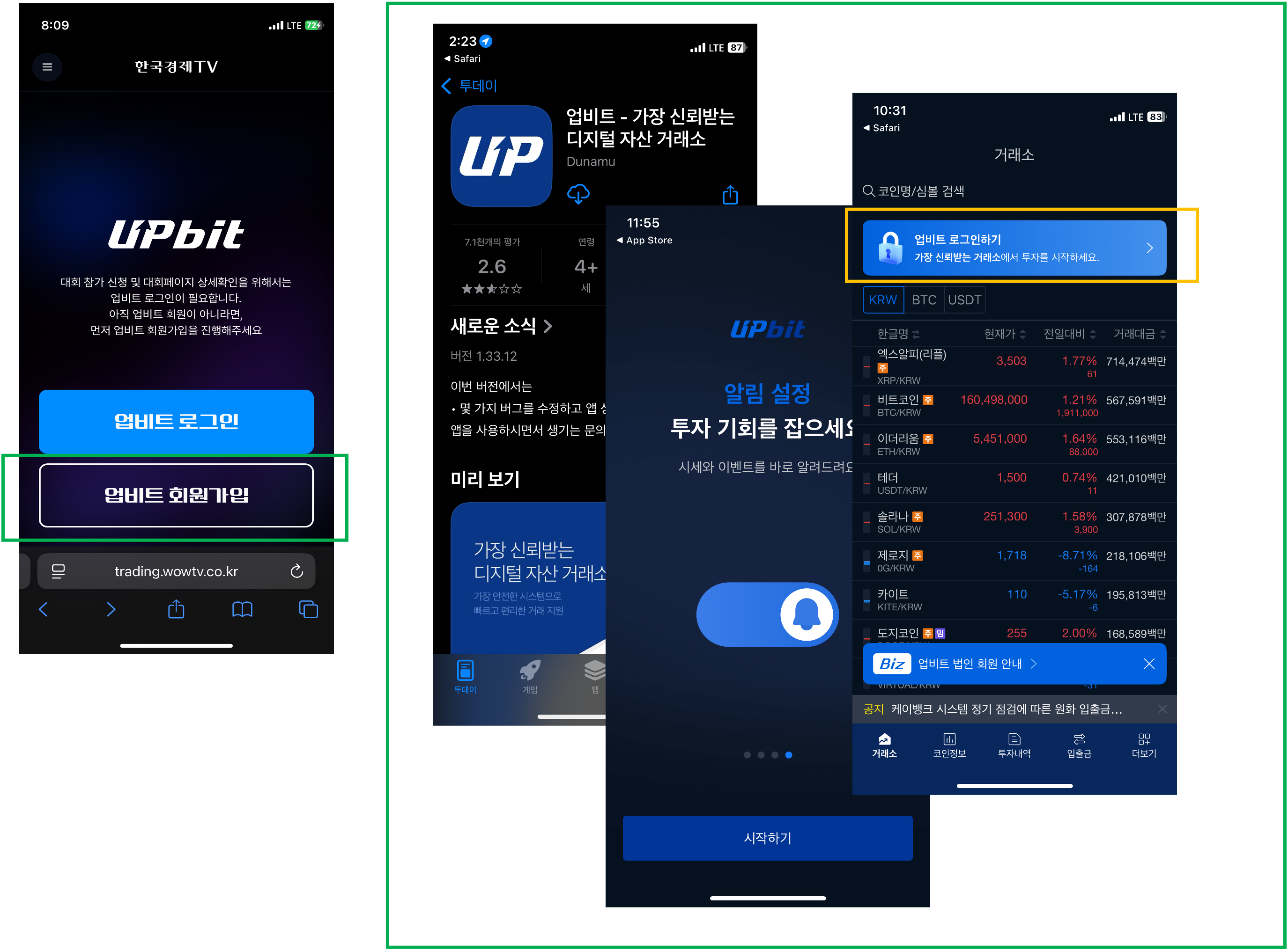 - UPbit App설치 후 '업비트 로그인하기' 선택