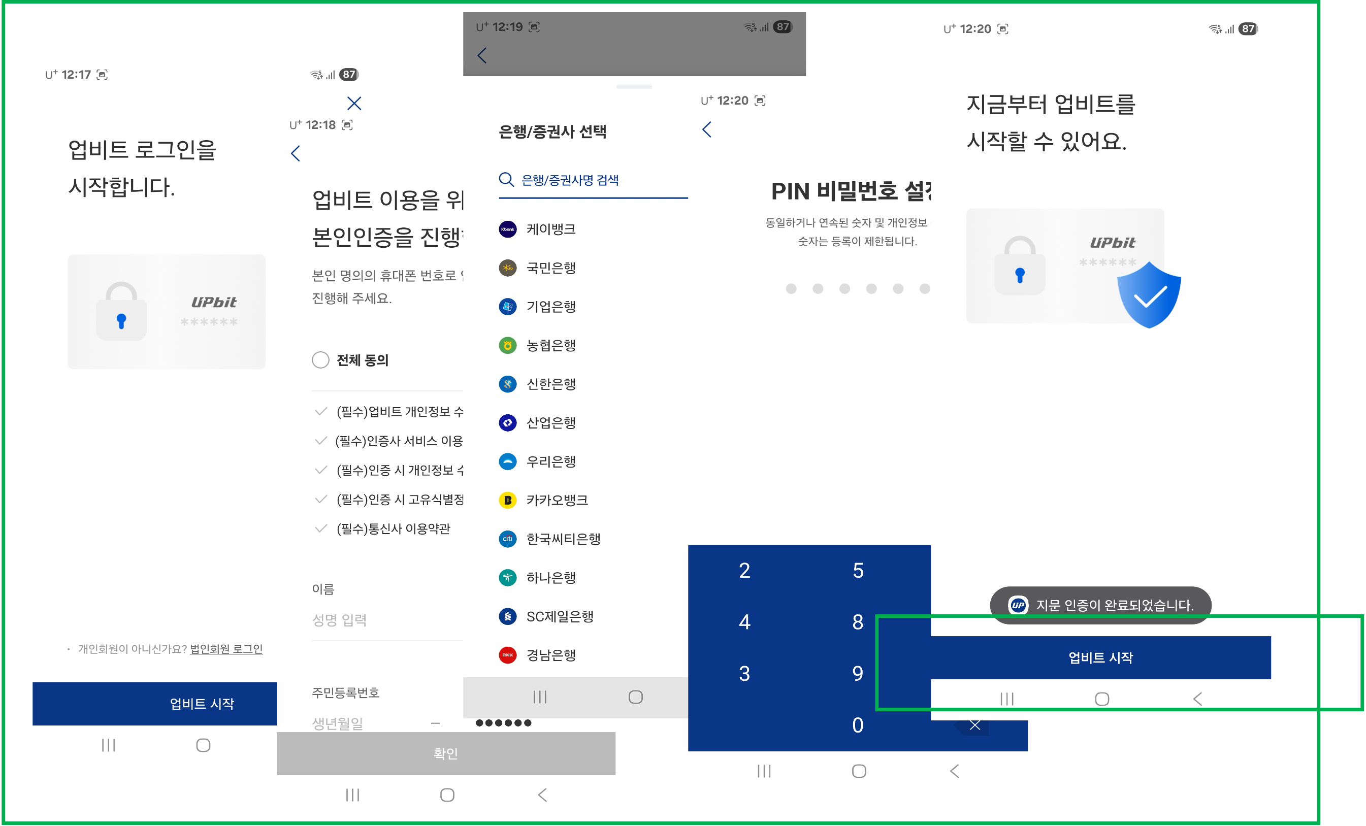 - '업비트 시작' 버튼 활성화 시 회원가입 완료