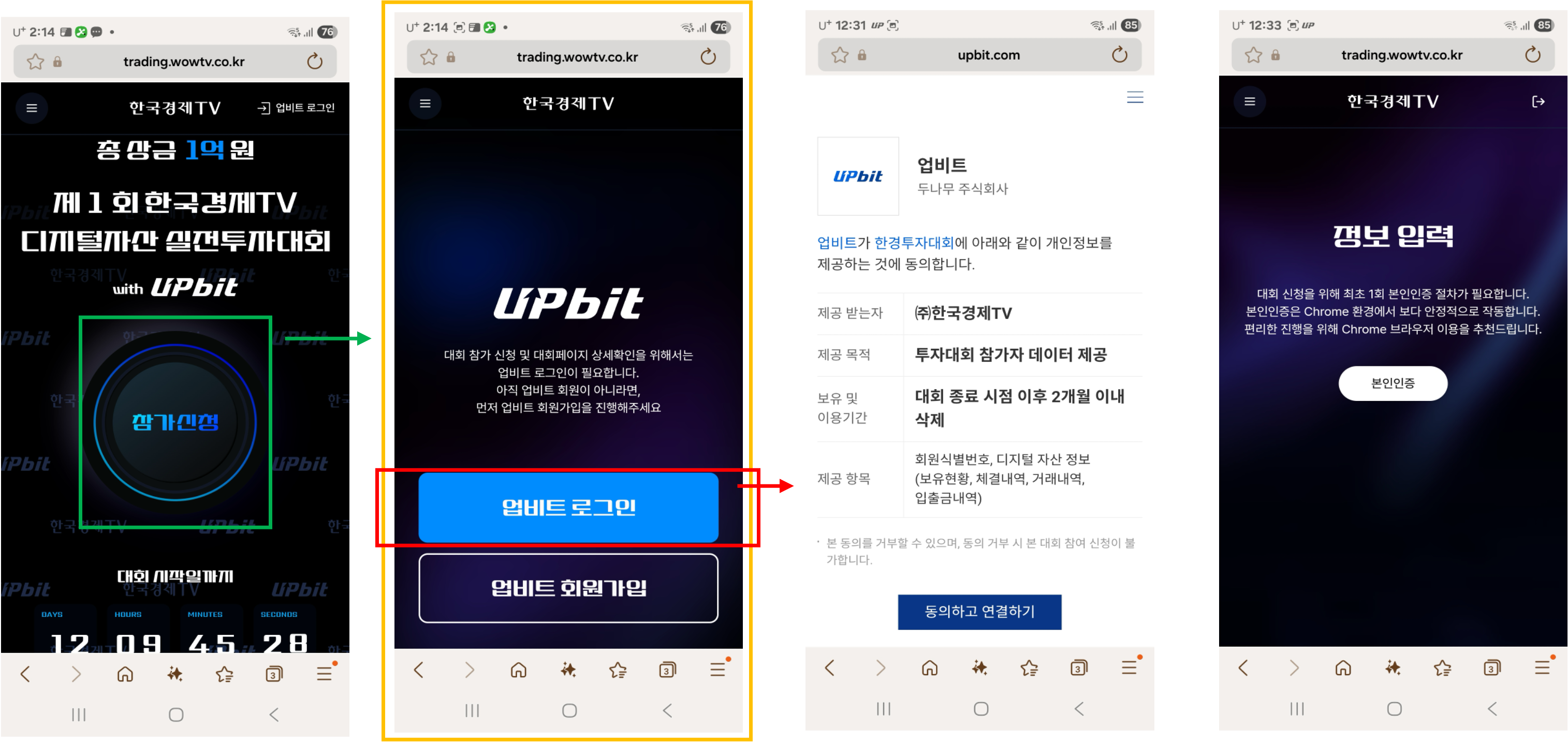 - 업비트 로그인 완료 후 대회 본인인증 페이지로 이동