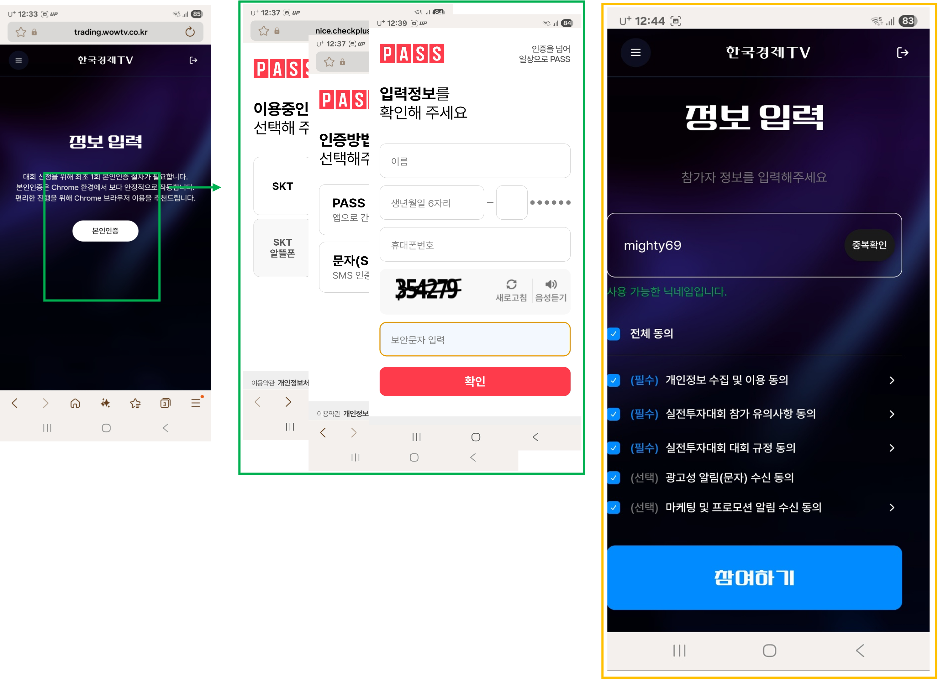 - 한국경제TV에 대회 운영을 위한 고객정보 제공(제공 항목) 동의 절차를 진행